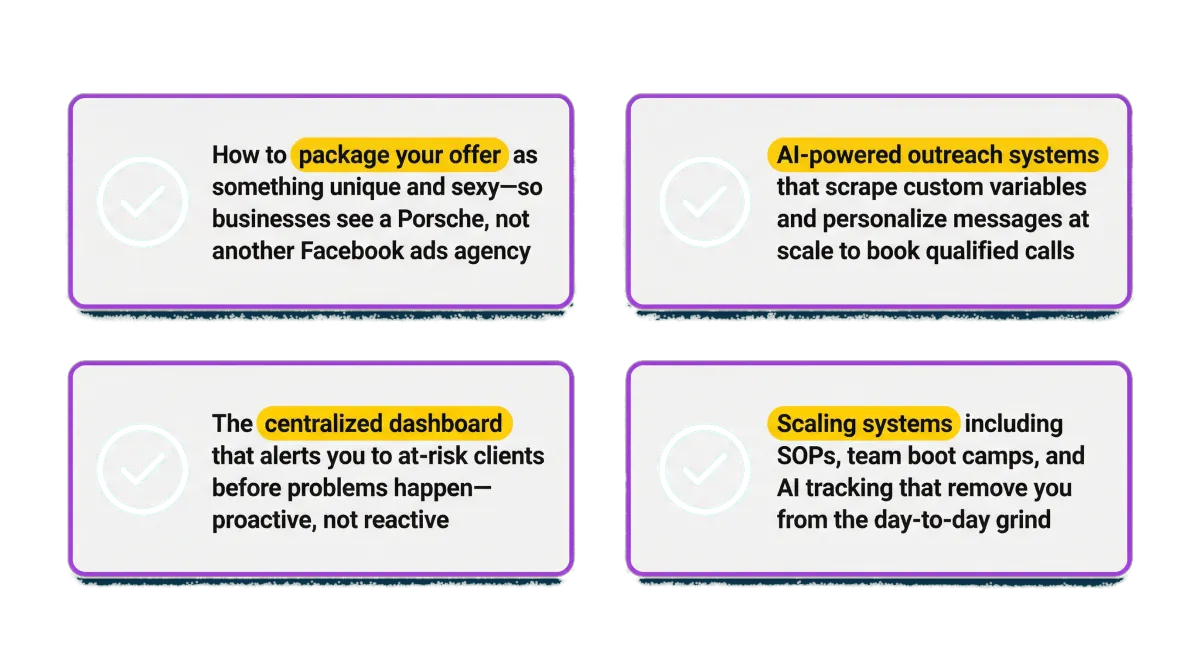 You're getting the exact playbook I used to build a multi-seven-figure agency that runs without me - and how you can do it faster than I ever could.