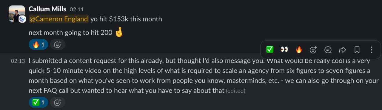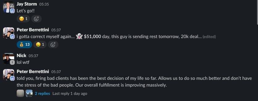 My clients like Peter just hit $280K months. JC, Sam, and Liv all crossed $100K/month. Tyler left his corporate job and built an $80K/month agency in under a year.